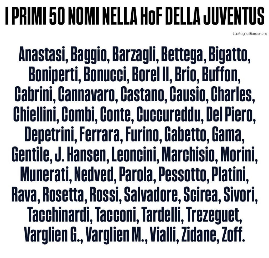 იუვენტუსმა დიდების დარბაზი შექმნა და მასში პირველი 50 ფეხბურთელი შეიყვანა.