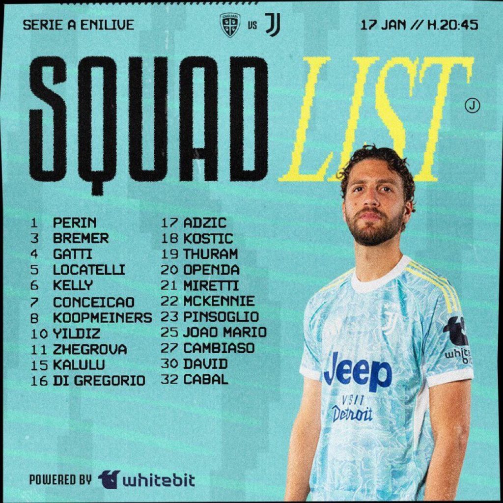 იუვენტუსმა კალიარისთან მატჩის წინ გუნდის განაცხადი გამაოქვეყნა.