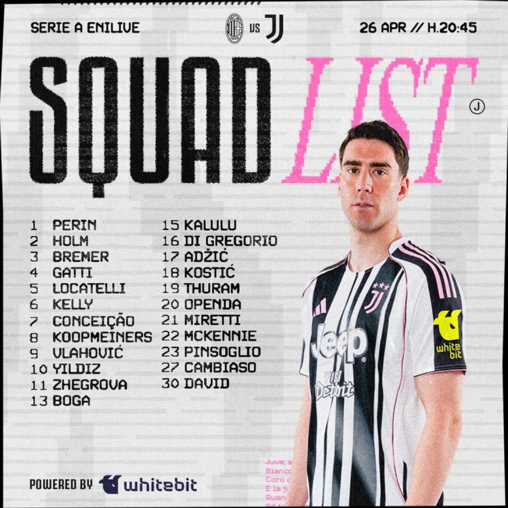 იუვენტუსმა მილანტან მატჩის წინ გუნდის განაცხადი გამოაქვეყნა.