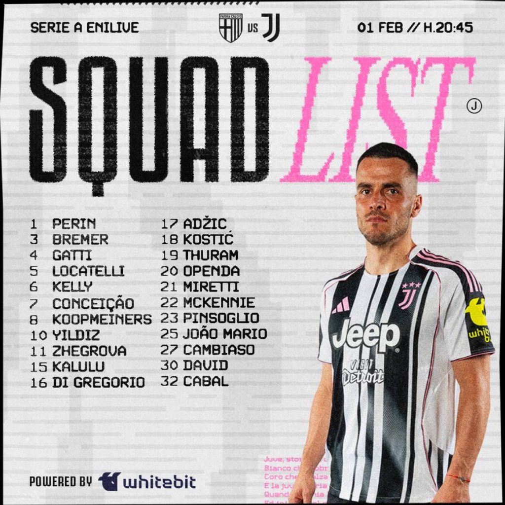 იუვენტუსმა პარმასთან მატჩის წინ გუნდის განაცხადი გამოაქვეყნა.
