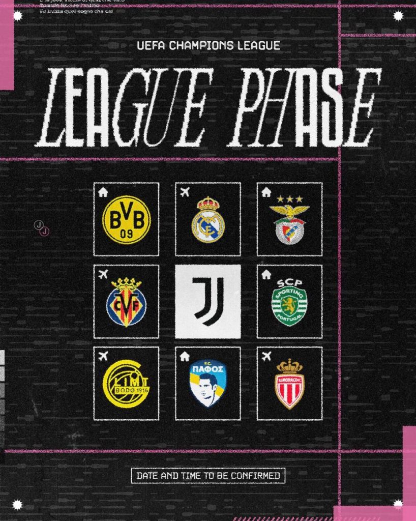 იუვენტუსს დორტმუნდის, რეალის, ბენფიკას, ვილიარეალის, სპორტინგის, ბოდოს, პაფოს და მონაკოს წინააღმდეგ მოუწევს თამაში.